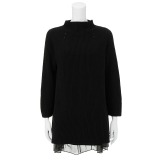 【商品構成】・チュニックプルオーバー・インナーリブ編みとタック編みの変化組織による両畦編みのチュニックプルオーバーとインナーのセットです。