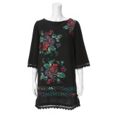 ジョリーフェムクロスステッチ風プリント七分袖チュニックプルオーバー