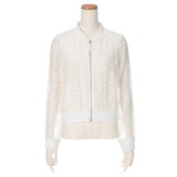 アンリック オー ブルー麻混オパール加工ドット柄ブルゾン
