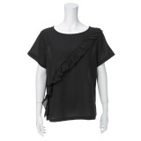 絶妙な光択感のヴィンテージ風のサテン素材で、大人プリーツを表現した半袖ブラウスです。■身頃:身頃上部からあしらった細かいプリーツが印象的な仕上がり。