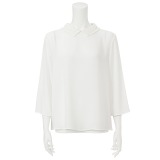 なめらかな肌触りの生地を使い、美しいドレープを描くボックスシルエットブラウスです。七分袖のため、ボックスシルエットをバランスよく着こなしていただけます。