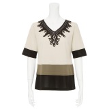 モン・シュ・シュラウンドネック八分袖プルオーバー