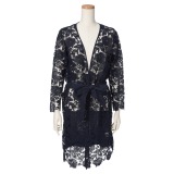 カダーランドレース刺しゅう切替長袖ニットロングカーディガン