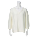 オブレクト圧縮ニットVネック八分袖プルオーバー