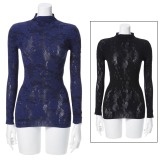 メッシュ(パワーネット)素材を使用し、透け感がエレガントな印象を漂わせる、ハイネックの長袖プルオーバーです。