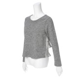 当ブランドで定番のスムース素材をベースに使用し、袖口部分と裾部分をシフォン素材で切り替えた、エレガントな印象の長袖プルオーバーです。