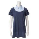 マヤマヤフェイクレイヤード切替デザイン半袖チュニックプルオーバー