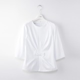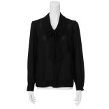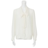 当ブランドでご好評いただいているボウタイ付きブラウスです。ポリエステル素材で、シワになりにくく扱いやすいのが特徴。