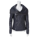 表地にシープレザーを使用し、ショールカラーの襟端から前立て内側部分にレーザーカットでアクセントをつけた、ジップアップブルゾンです。