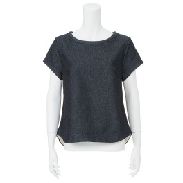 ●SHOPオリジナル商品■身頃:細番手の綿と光沢感のあるポリエステル長繊維を使い、ツイル状に編み上げたハイゲージニットのデニム調ジャージー素材を使用。
