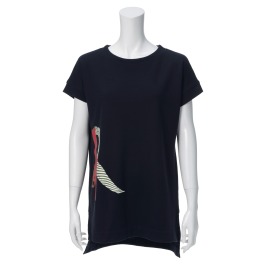 ロベルタディカメリーノフォルトゥーナデニム調ジャージーRロゴ刺しゅう半袖ワンピース
