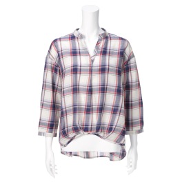 ルイシェードチェック柄タックアクセントスキッパーブラウス