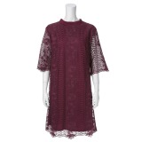 カダーランドレース刺しゅう七分袖ワンピース
