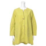 大きなスナップボタンと丸いポケットがポイントになった、コクーンシルエットの一重仕立てスプリングコートです。