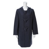 圧縮ニットで仕上げた一重仕立てのダッフルコートです。■身頃:前後身頃にヨーク切り替えを配し、後ろの肩部分にはダーツを取り、立体感を演出。