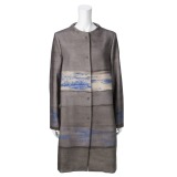 イタリア製の上品なノーカラーコートです。■一見ノーカラーでコンパクトさがうかがえるデザインですが、しっかり着込んでも着用できるくらいの、ゆとりある仕立てとなっています。