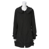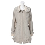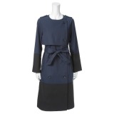 バイカラーで切り替えた、ノーカラー(ラウンドネック)のトレンチコートです。トレンチコートの持つ万能な着回し力を生かしながら、メンズっぽい堅苦しさを軽減し、女性らしくアレンジ。