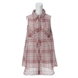 ゼラールスポーツ イタリアンリネン チェック柄 ノースリーブブラウス