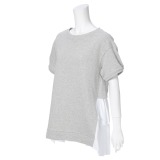 カットソー素材に布帛のフリルを組み合わせた、スポーティーエレガントなレイヤード風デザインの半袖プルオーバーです。