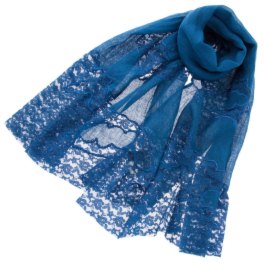 涼やかな麻素材にレースをあしらった華やかな印象のストールです。コーディネイトのアクセントにおすすめのアイテム。