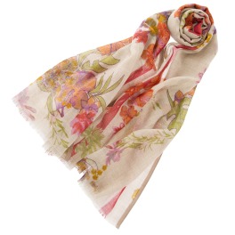 ざっくりと織られたシルク混生地を使用し、中央部分にフラワープリントを散らして仕上げたストールです。