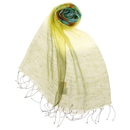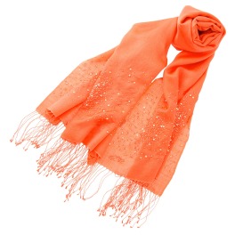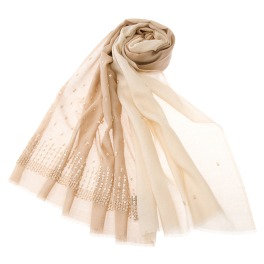 キラキラと輝くビーズがほどこされ、明るい印象に仕上がったストールです。ウールシルクのさらりとした肌触りが心地よい一枚です。