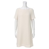 前身頃上部にレースとビーズ刺しゅうをあしらい、ゴージャスな印象に仕上げた、フレンチスリーブのワンピースです。