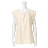 袖口にレースをあしらいアクセントをつけた、フレンチスリーブプルオーバーです。■身頃:前身頃のネックラインのギャザーが、やさしい雰囲気を演出。