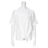 シャツカラーの七分袖ブラウスです。■身頃:シャツカラーのきちんと感と、前身頃に2枚重ねた優雅なドレープデザインがポイント。