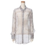 チャン・ループリントデザイン長袖ブラウス