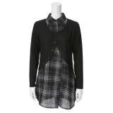 ヴィアチェーロレイヤードデザインチェック柄長袖チュニックシャツ