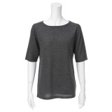 プールトレファムウールシルクラウンドネック五分袖プルオーバー