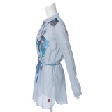 ゼラールスポーツフレンチリネン100%共布ベルト付八分袖シャツワンピース
