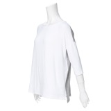 ビッグシルエットの五分袖Tシャツです。■身頃:レーヨン綿の天竺素材を使用。レーヨンの光沢感と綿の柔らかさを併せ持った着心地の良い素材です。
