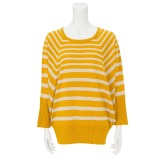 ボーダー柄ラグランスリーブビッグシルエットニットプルオーバー