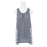 インデックスマジック鳥柄プリント切替デシンノースリーブチュニックプルオーバー