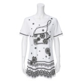 バッグ柄のプリントが華やかな半袖のプルオーバーです。■身頃:バッグプリントが上品な雰囲気の一枚。レース柄が女性らしさをプラスしてくれます。
