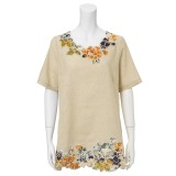 麻混の素材を使用したフラワー刺しゅうがかわいらしい半袖ワンピースです。■身頃:麻混の素材を使用した、爽やかな雰囲気の一枚。