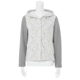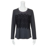 前身頃にレースをデザインした大人かわいいプルオーバーです。レースの上には花の形になるようにビーズをあしらいました。