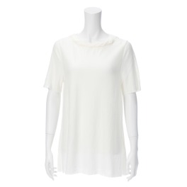 なめらかなキルトジャージー素材を使用。レイヤードスタイルも楽しめるデザインです。■素材:ドット柄を配して生地表面に立体感をプラスした、新鮮な印象のキルトジャージー素材を使用。
