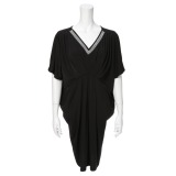 圧縮ウール混の素材を使用した八分袖ワンピースです。■身頃:ニットの組織に縮重をかけた圧縮ウール混素材を採用。