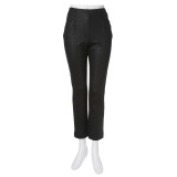 ストレッチツイル素材を使用した、八分丈のレギンスパンツです。■身頃:細かい凹凸感をしっかりと楽しめるストレッチツイル素材を採用。