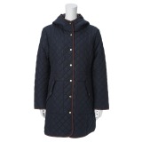 上質なポリエステル素材を使用し、柔らかい中綿でキルティング加工をほどこした、フード付きのコートです。