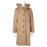 艶やかさと上質感のあるウールカシミヤを表地に使用し、フォックスファーをフード部分にトリミングした、ゴージャスな印象のコートです。