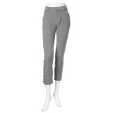 裾に配したボタンがさりげないアクセントになった、シンプルではきやすいデザインの裏起毛ストレッチパンツです。