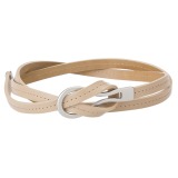洗練されたデザインでさりげなく着けていただける細めのベルトです。くるっと巻いて留め具に通してラフに結ぶ仕様。