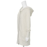 身生地にコットン100%のやさしい肌触りの素材を使用したロングパーカーです。シンプルに見えて、ダブルジップやバックスタイルにほどこれたさりげないデザインが、おしゃれなアイテム。