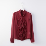 ナラカミーチェシフォンジョーゼットフロントフリル長袖ブラウス