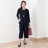 裏起毛生地を使用し、ラメニットリブをアクセントにきかせた一枚でコーディネイトが完成する長袖ロングプルオーバーです。