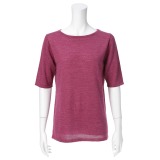 プールトレファムウールシルクラウンドネック五分袖プルオーバー